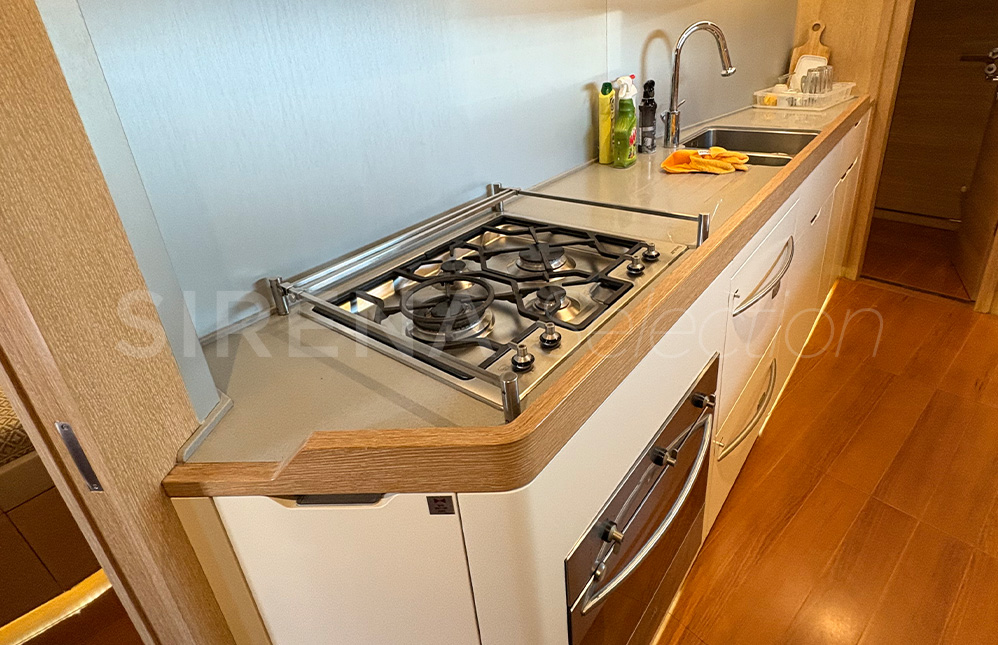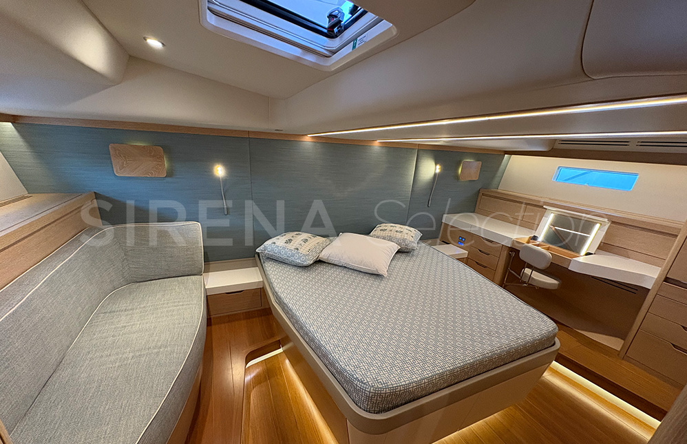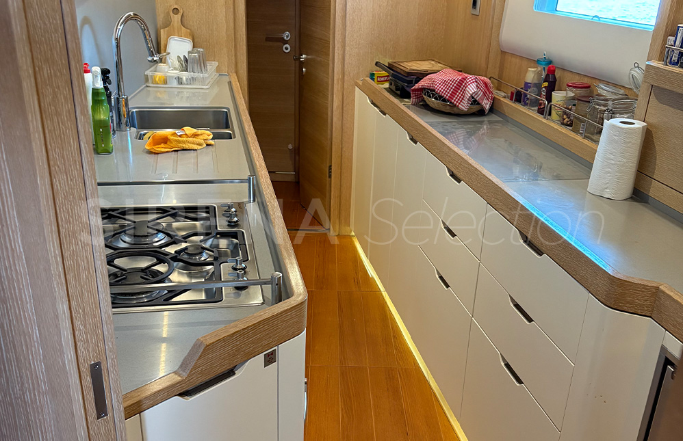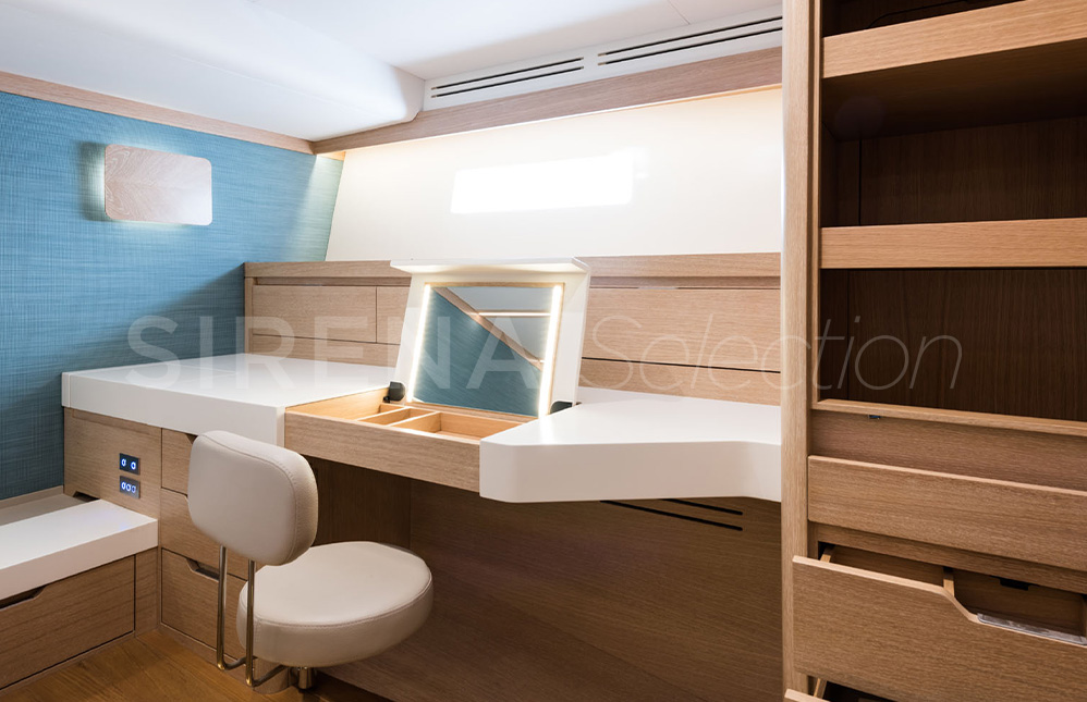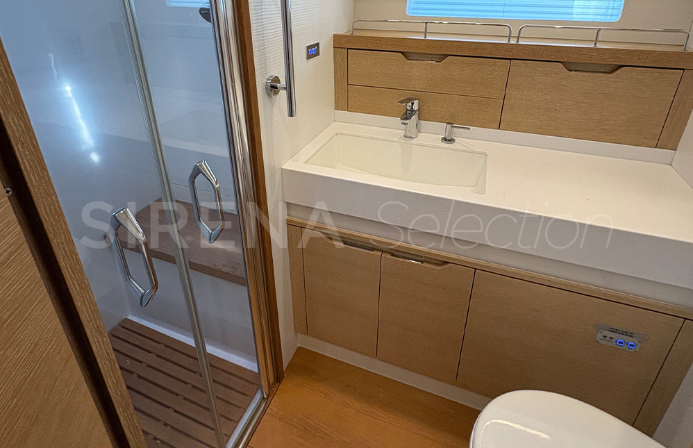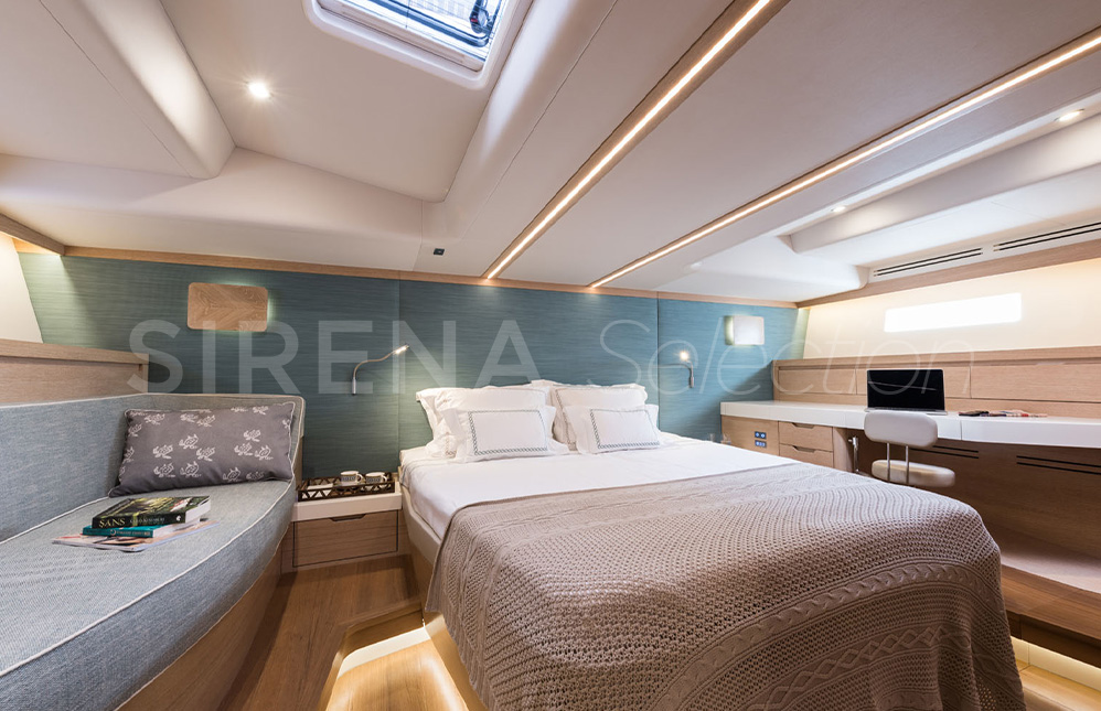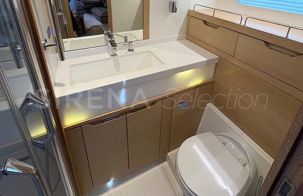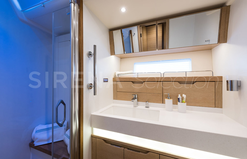 The beautiful and comfortable interior created in association with Design Unlimited includes three options for its three cabin arrangement. Satisfying the needs of the more demanding families and charter clients. There is also the choice of a forward or aft owner’s cabin.