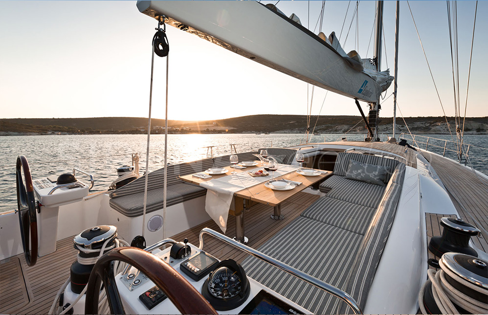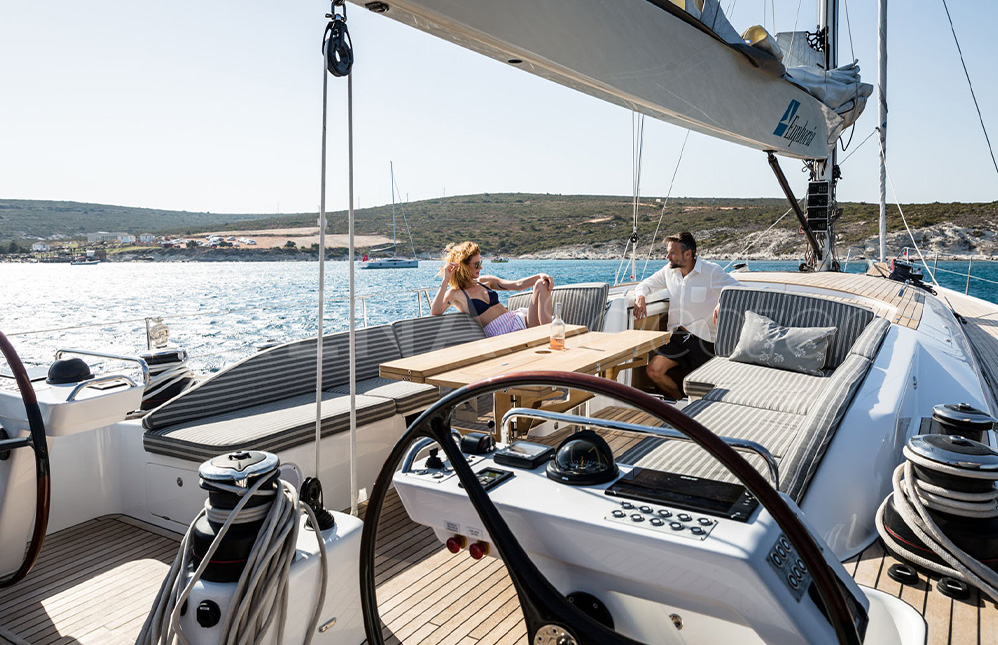 Germán Frers has developed the design for the new Euphoria 68 along the same modern lines as the Euphoria 54. The deck with its large open areas and the spacious cockpit make it perfect for sailing or relaxing.