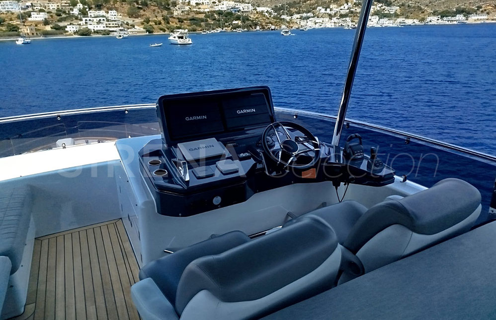 - Joystick control for engines and thrusters (main helm and flybridge)