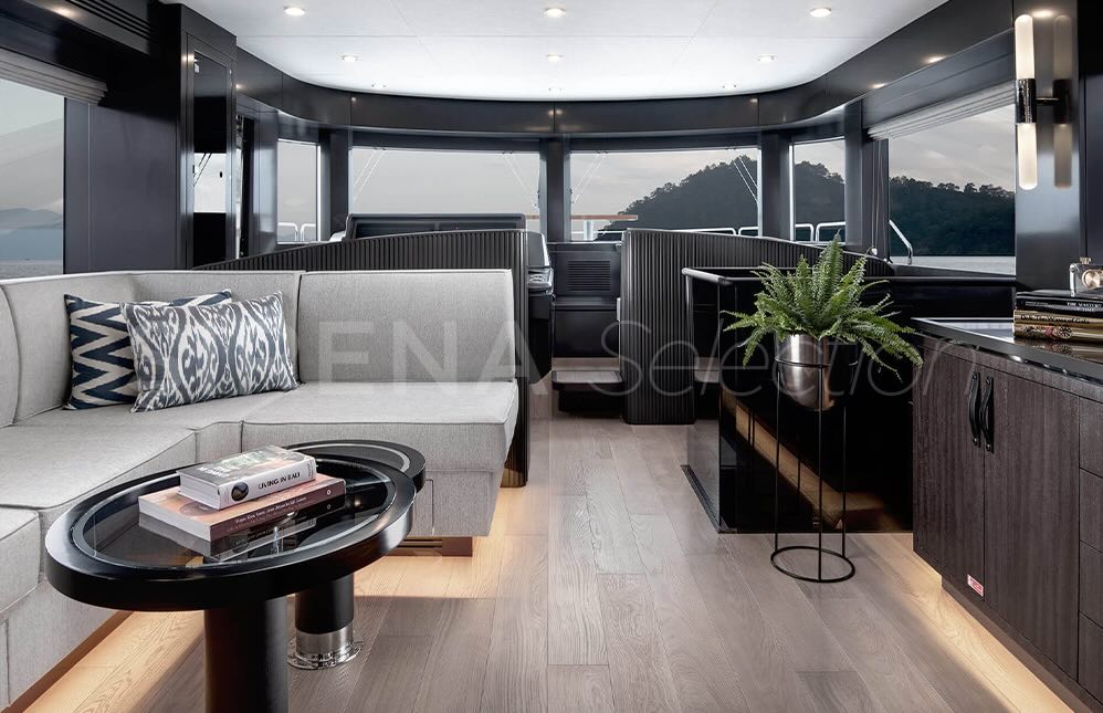 - Manual hi-lo table for flybridge forward portside seating unit (convertible to sunbathing area)