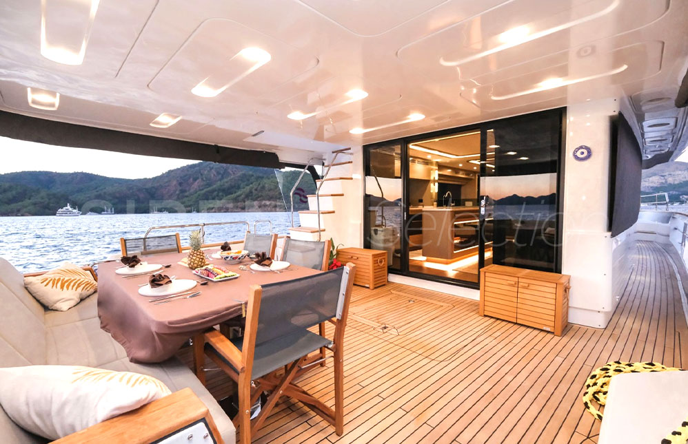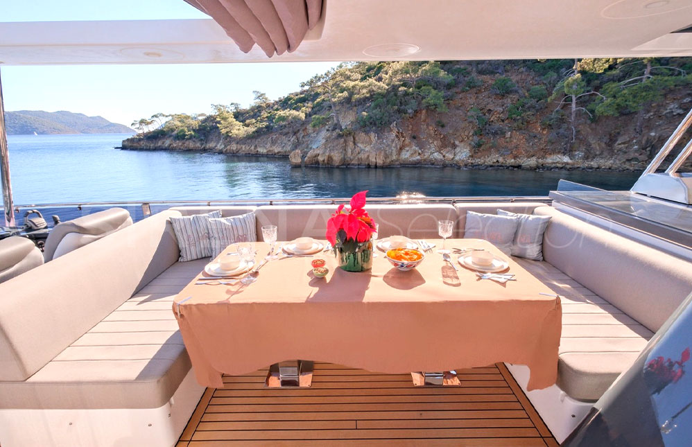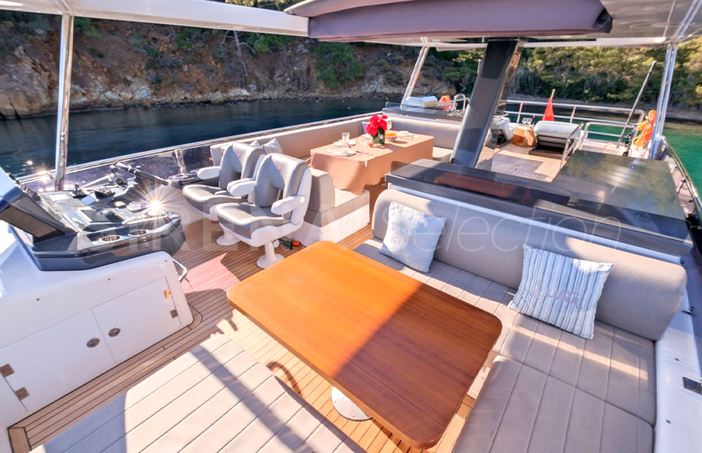 • Manual hi-lo table for flybridge forward portside seating unit (convertible to sunbathing area)