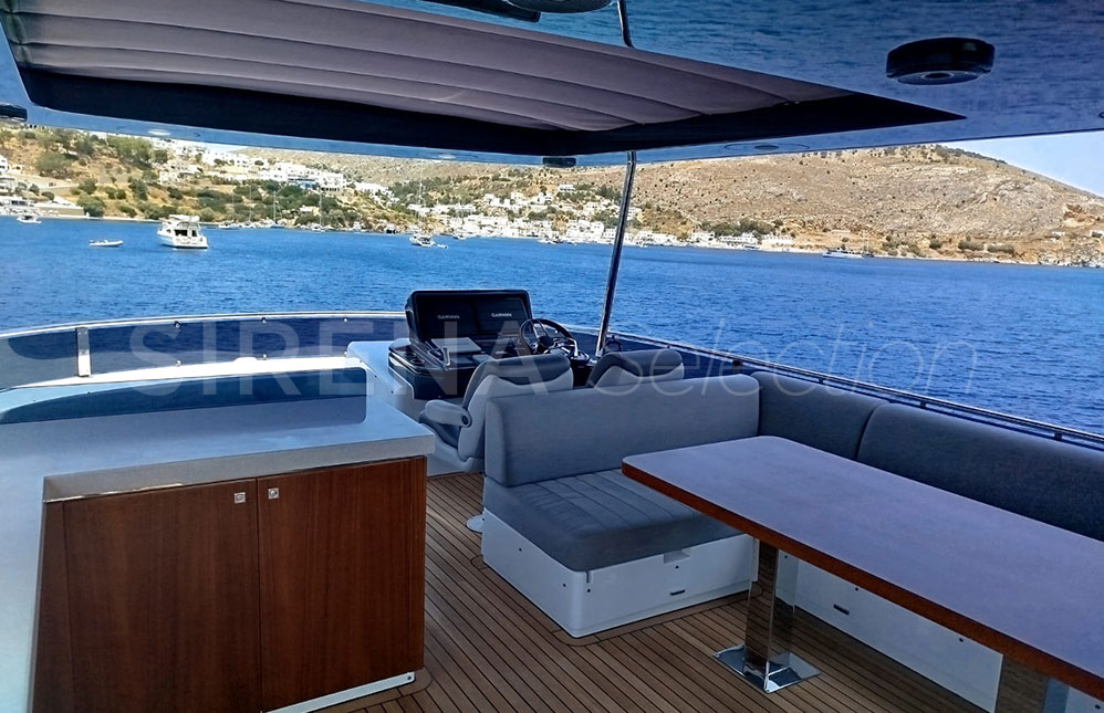 - Manual hi-lo table for flybridge forward portside seating unit (convertible to sunbathing area)