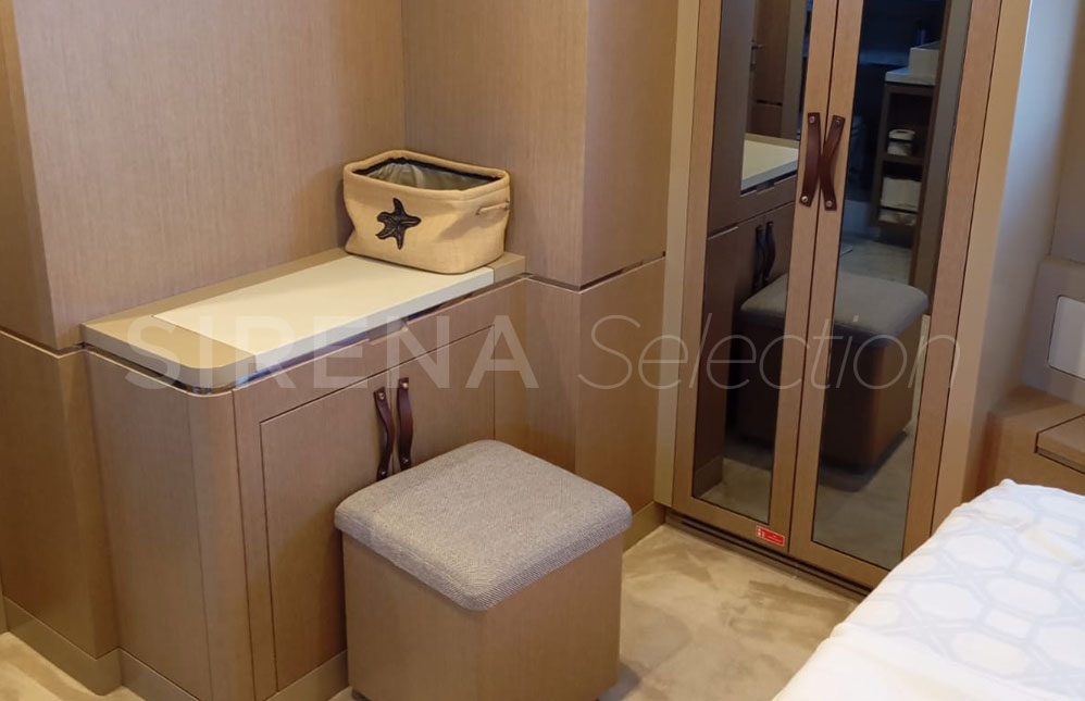 - Crew cabin | Two single beds on the sides with storages underneath, head, two full height wardrobes, access door to the engine room (OPT551)