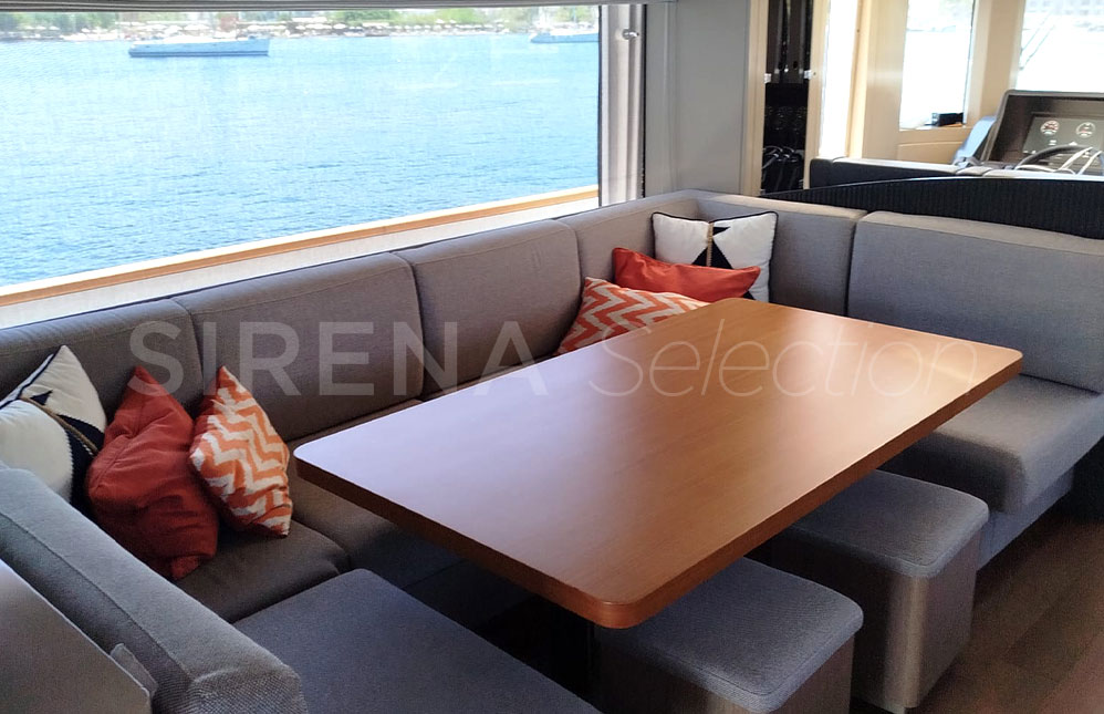 - Foredeck electric hi-low table converting into sunbathing area